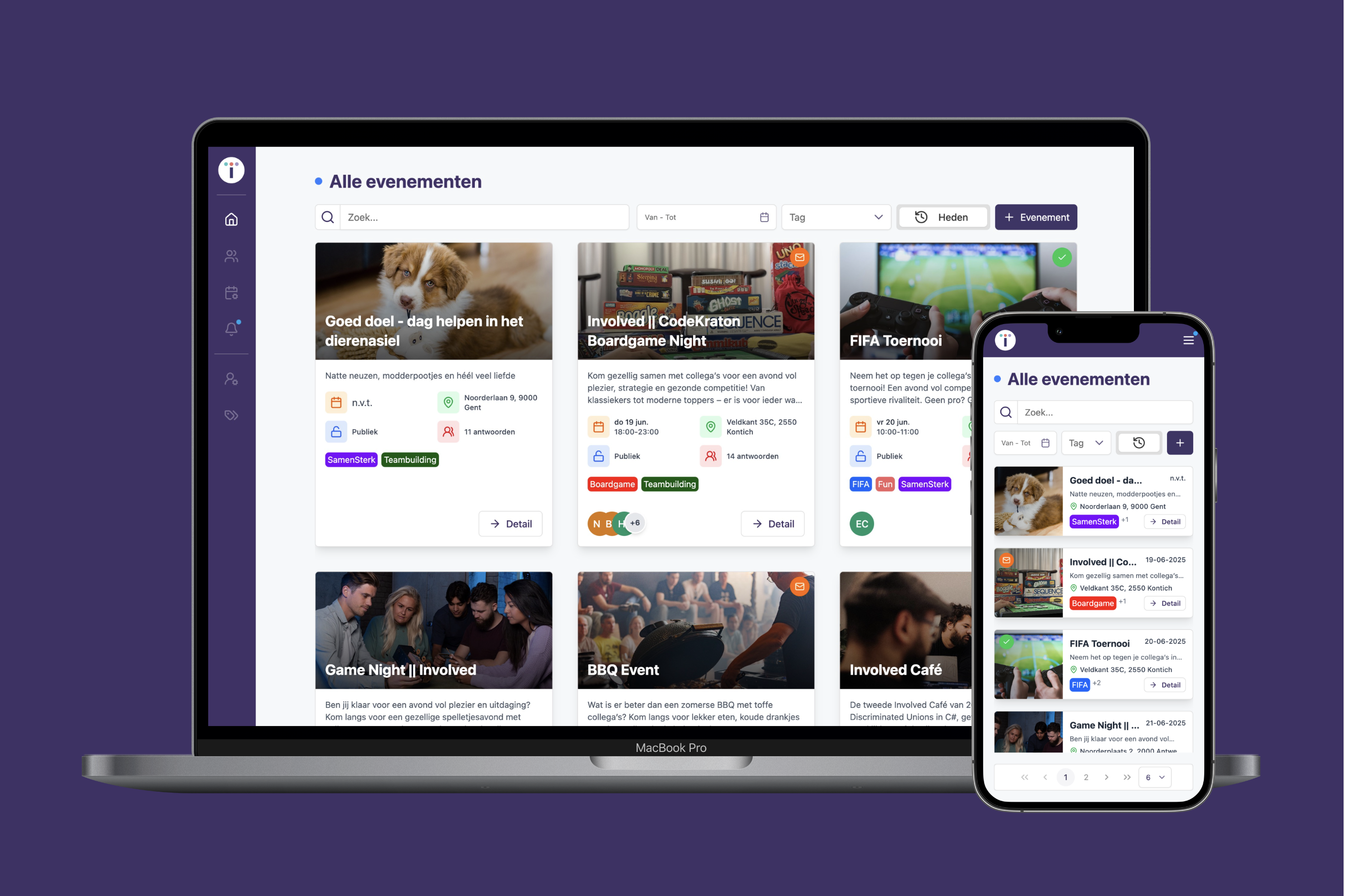 Ontwikkeld tijdens mijn persoonlijke stage bij Involved NV, deze applicatie stroomlijnt het plannen en beheren van evenementen door gebruikers in staat te stellen om in realtime evenementen aan te maken, te beheren en samen te werken. Het integreert met persoonlijke agenda's van gebruikers om beschikbaarheid te controleren bij het reageren op evenementen en synchroniseert e-mails van gedeelde mailboxen om automatisch relevante evenementen toe te voegen.